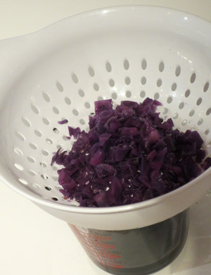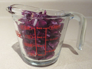 2.  Dice  enough red cabbage to fill approximately 1 cup.